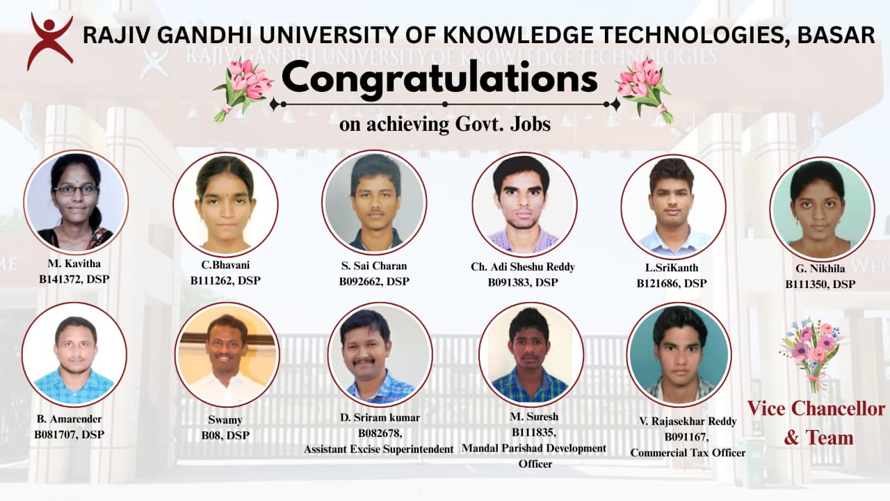 RGUKT Basar students excelled in the prestigious Group-I selections, reflecting their hard work, determination, resilience, and outstanding academic excellence and dedication.