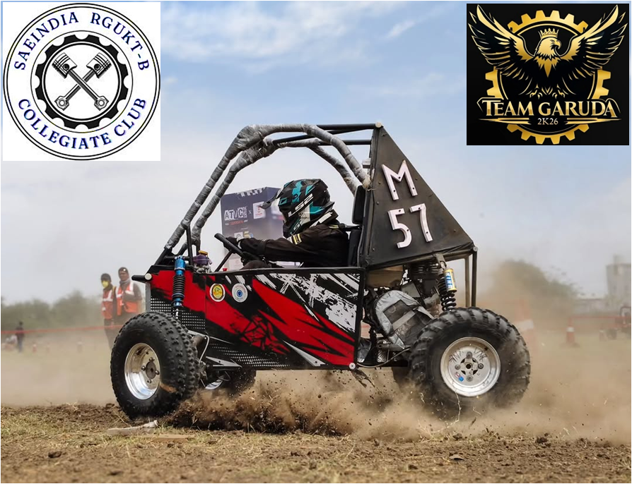 Team Garuda (30 students from 2nd, 3rd, and 4th year Mechanical Engineering) from Rajiv Gandhi University of Knowledge Technologies (RGUKT), Basar has achieved remarkable success by participating in two prestigious national-level competitions: M-BAJA SAEINDIA 2026 held at BVRIT, Narsapur, Telangana, and ATVC INDIA 2026 held at Monark University, Ahmedabad.